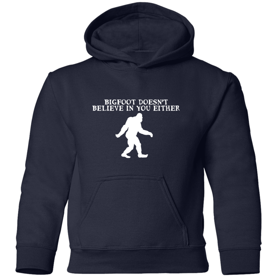 Bigfoot Doesn't Believe In You Either Kids Pullover Hoodie